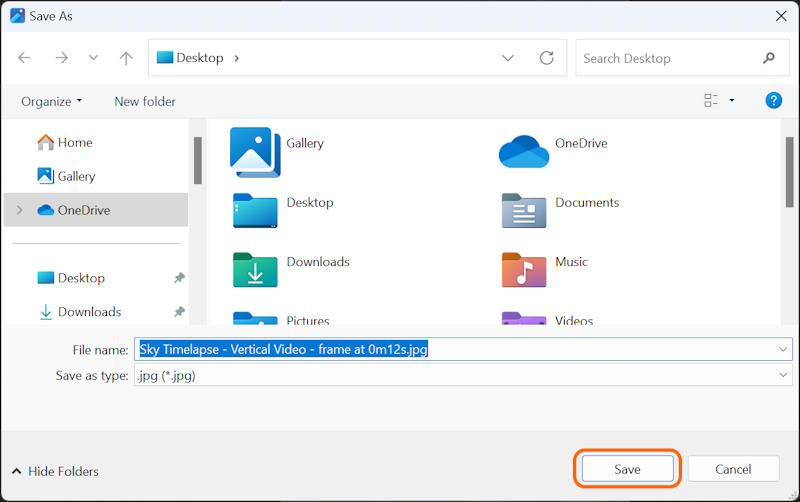 - Click on the Save a frame button.
